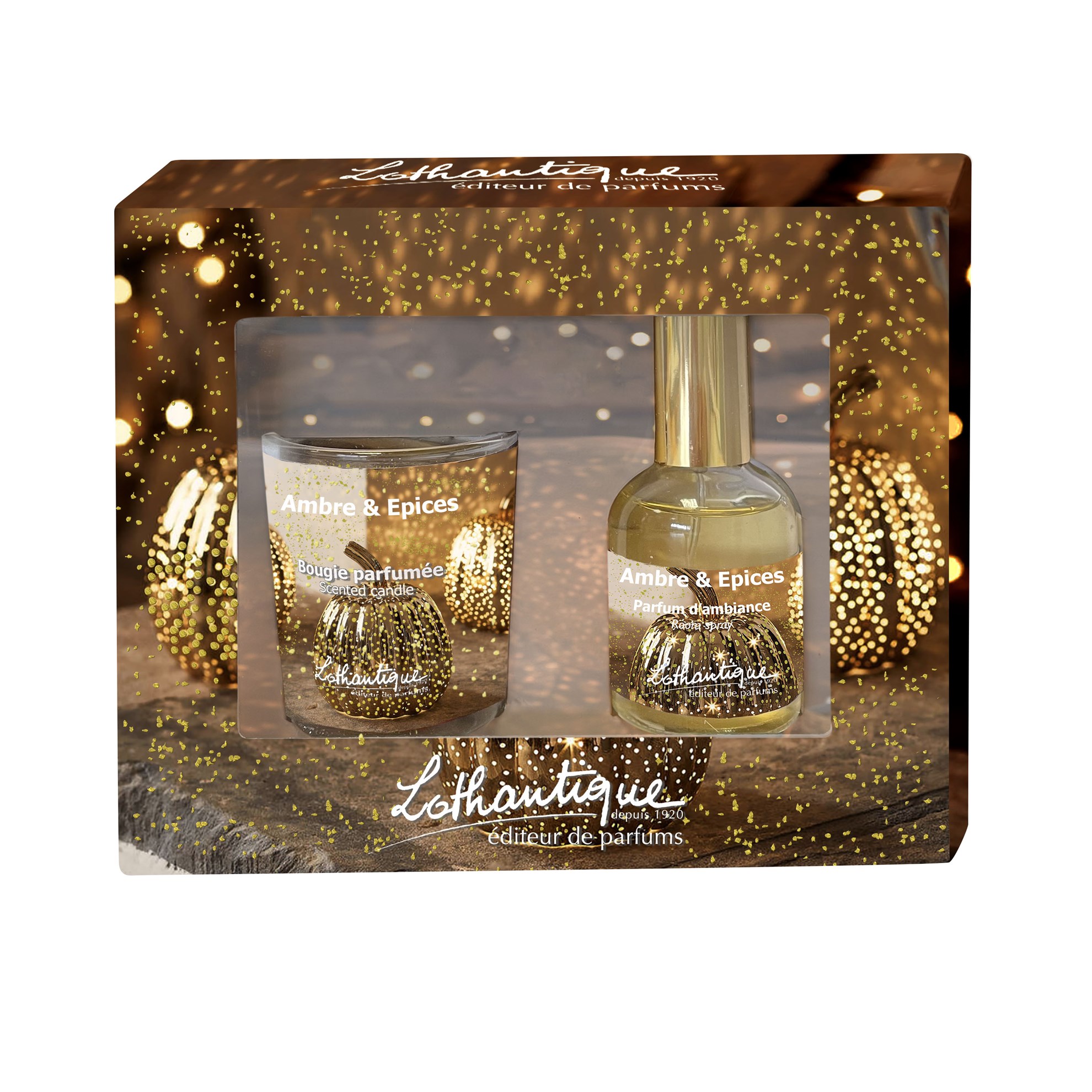 Dárkový box svíčka 75g a osvěžovač vzduchu 50ml Lothantique AMBRE & ÉPICES