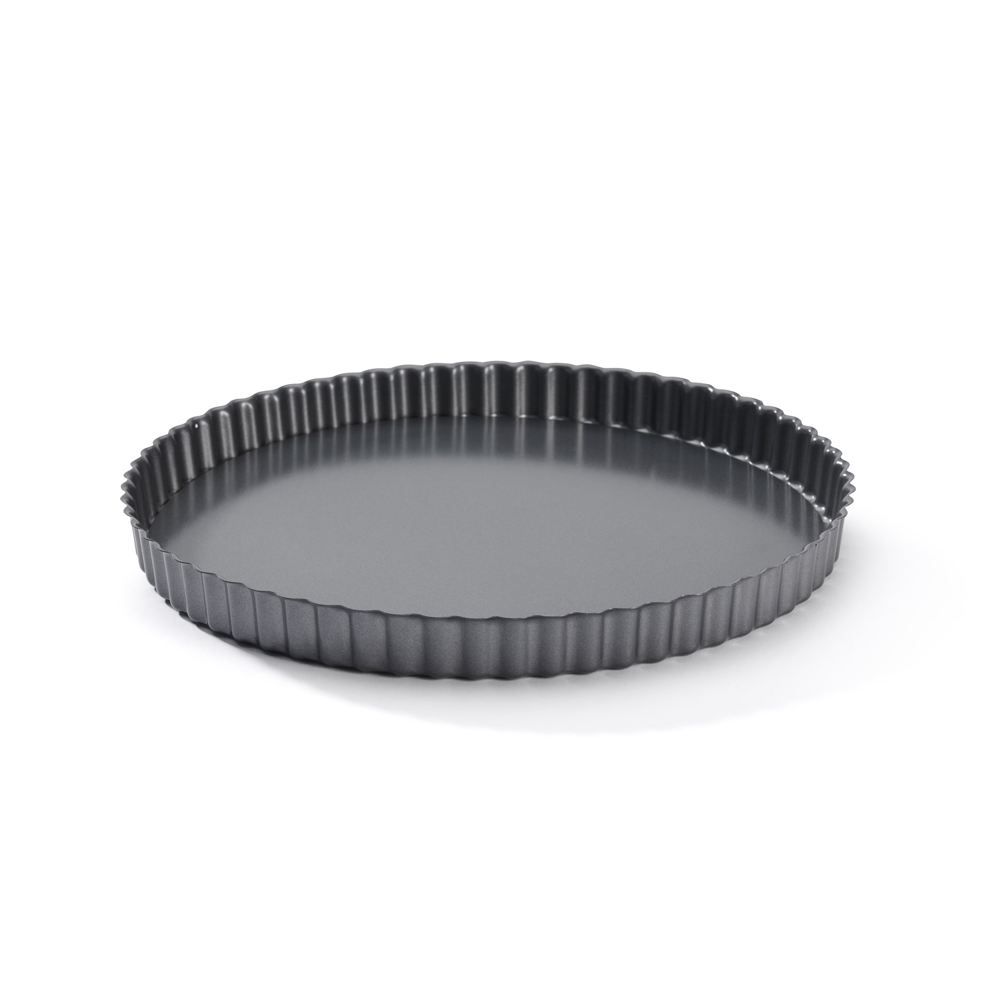 Silná ocelová vroubkovaná forma na koláč, rovný okraj a pevné dno.
