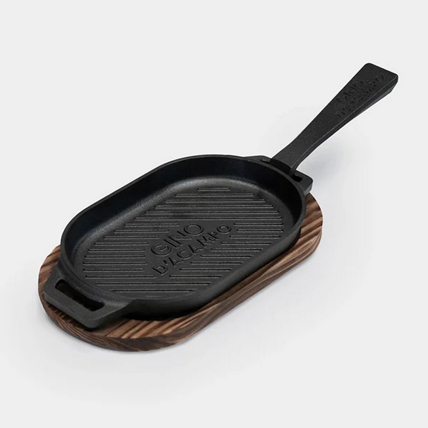 Litinová pánev Gino s rýhováním 29x16cm včetně dřevené podložky