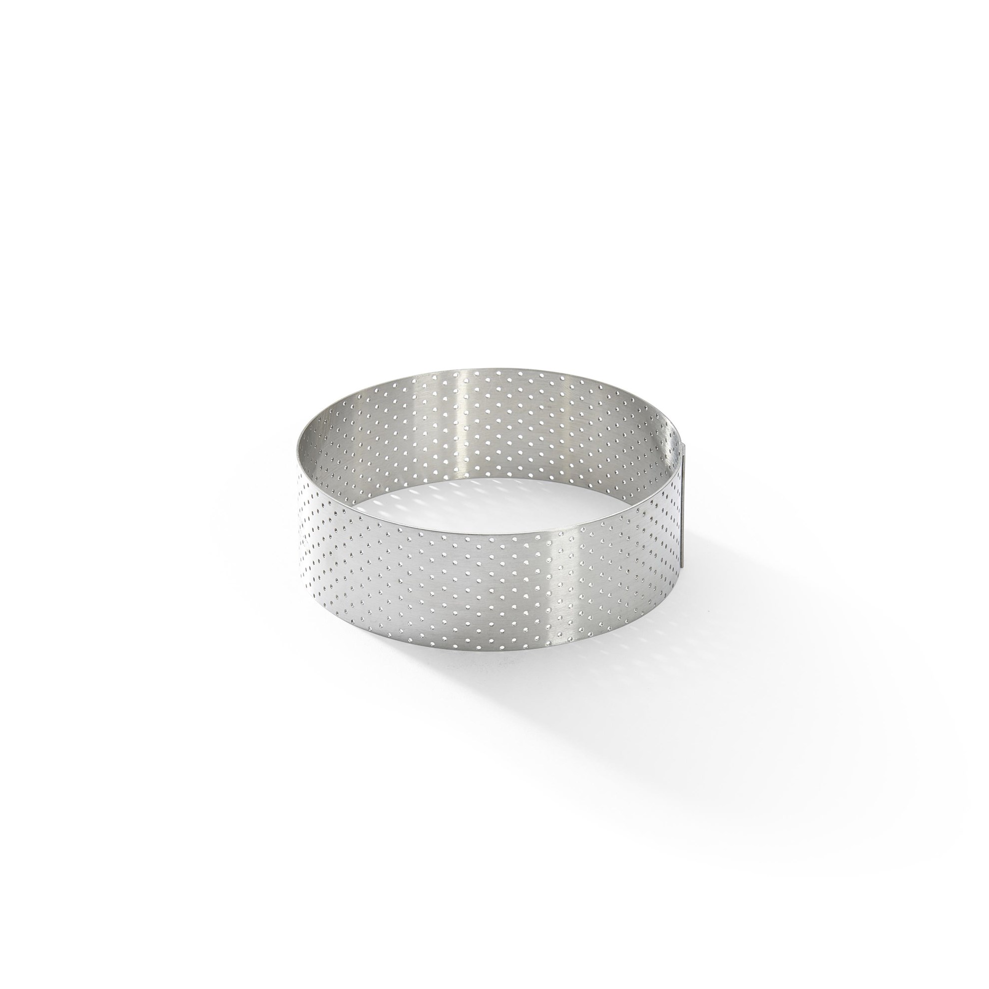 Kulatá perforovaná dortová forma z nerezové oceli je ideální na tartaletky, dorty a quiche. Vyvinuto ve spolupráci s Ecole du Grand Chocolat Valrhona.