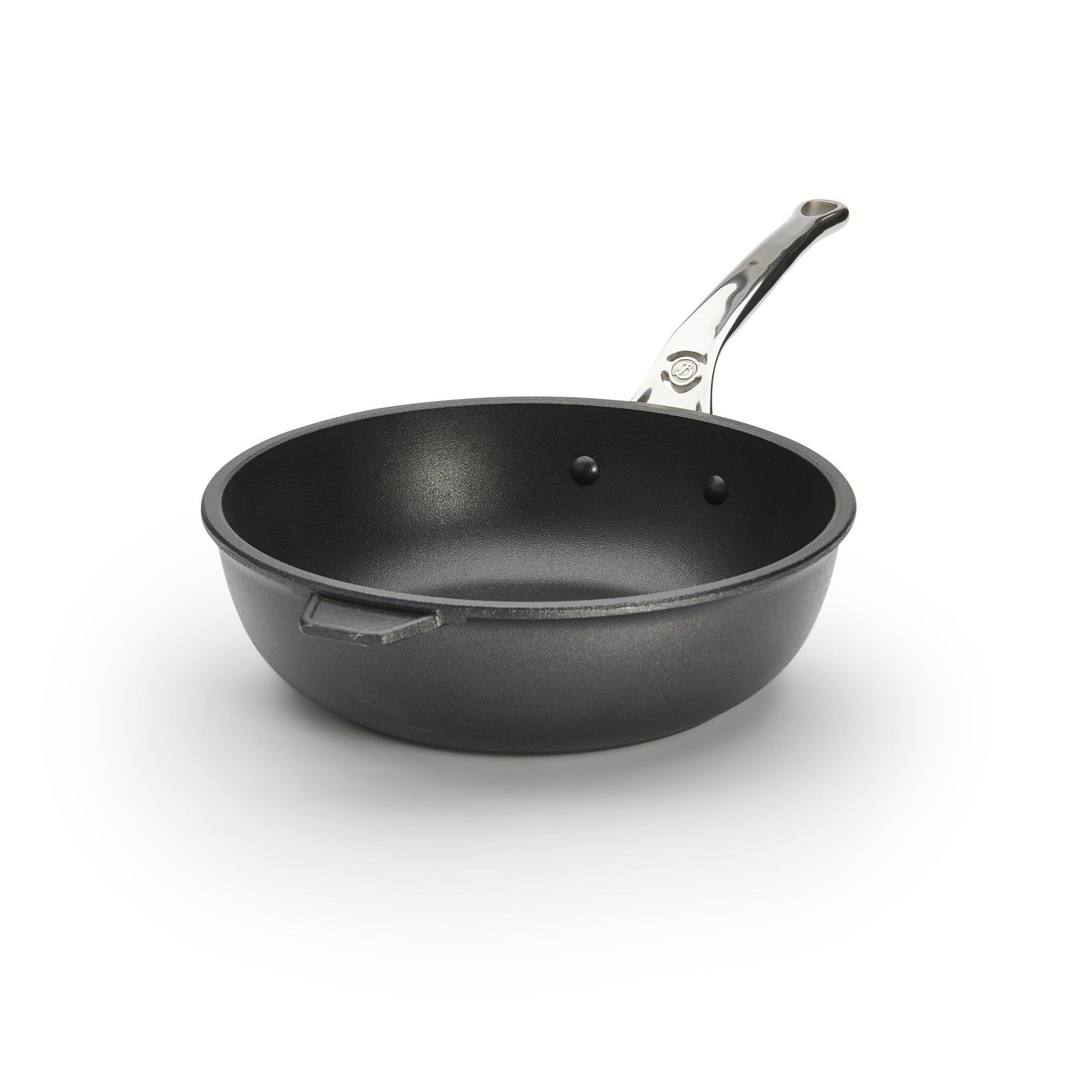 Model Choc Extreme je vyroben z litého hliníku s nepřilnavým povrchem a vybaven dlouhou rukojetí z lité nerezové oceli. Zatímco si zachovává tradici legendárních litinových rukojetí „à la française“, značka de Buyer vylepšila jejich ergonomii i vzhled. Rukojeť zajišťuje pohodlné a snadné používání.