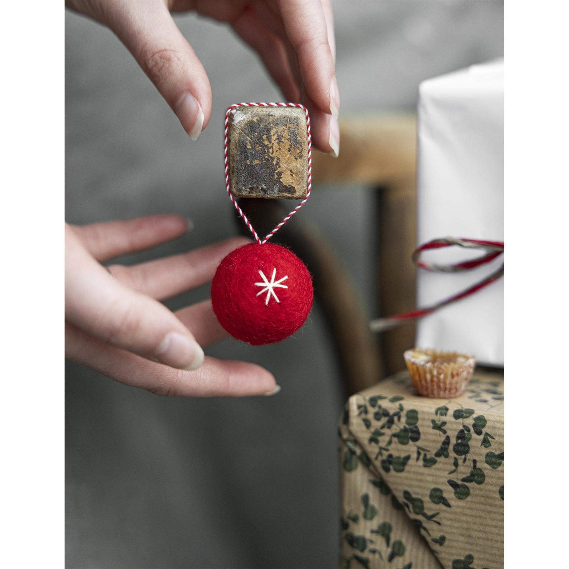 Vlněná dekorační koulička KULLINGE P.4cm červená