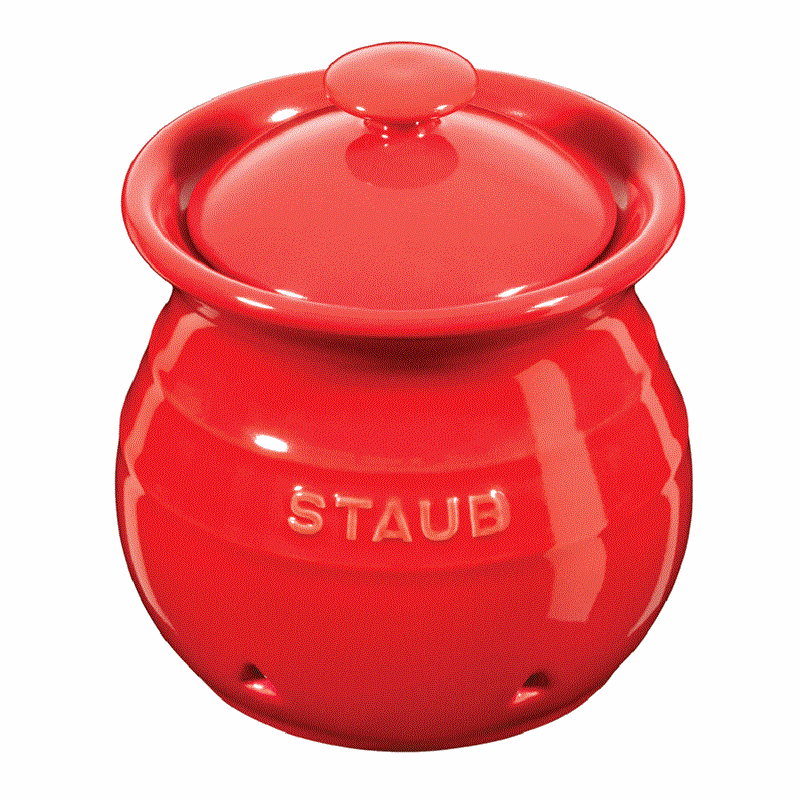 S dózou na česnek nabízí Staub ideální řešení pro skladování. Otvory na straně nádoby zajišťují dobré větrání, což umožňuje česneku dýchat a zůstat déle čerstvý. Lakovaný povrch je odolný proti poškrábání a zajišťuje snadné čištění. Díky svému decentnímu designu se dóza hodí téměř do každého interiéru kuchyně. Díky kompaktní velikosti 11 cm je tato třešňově červená nádoba také prostorově úsporná.