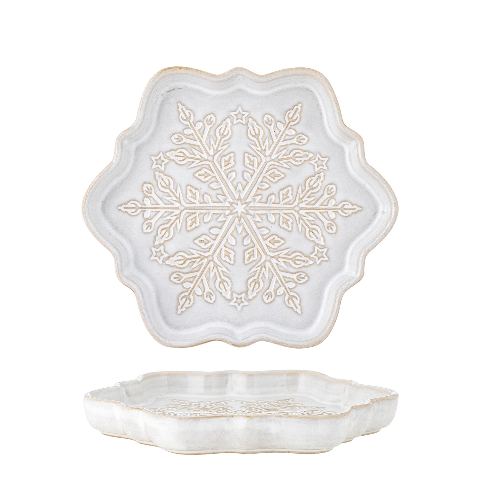 • Talíř z kameniny s reliéfním motivem sněhové vločky