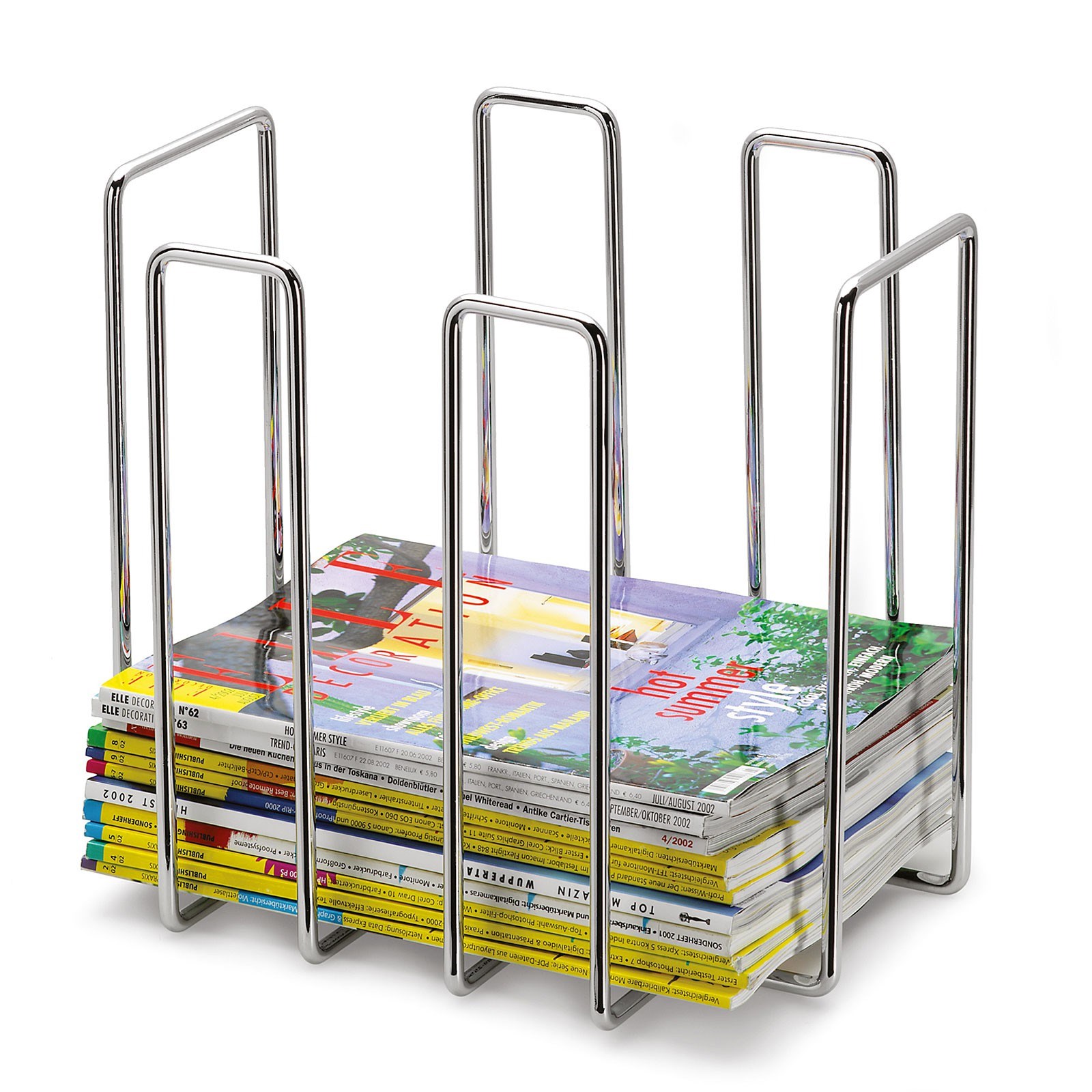 Stojan na časopisy WIRES z leštěné nerezové oceli uloží přehledně i úhledně velké množství časopisů. Lze jej snadno přenášet. Díky elegantnímu a nenápadnému designu se skvěle hodí do obývacího pokoje, haly či kanceláře.