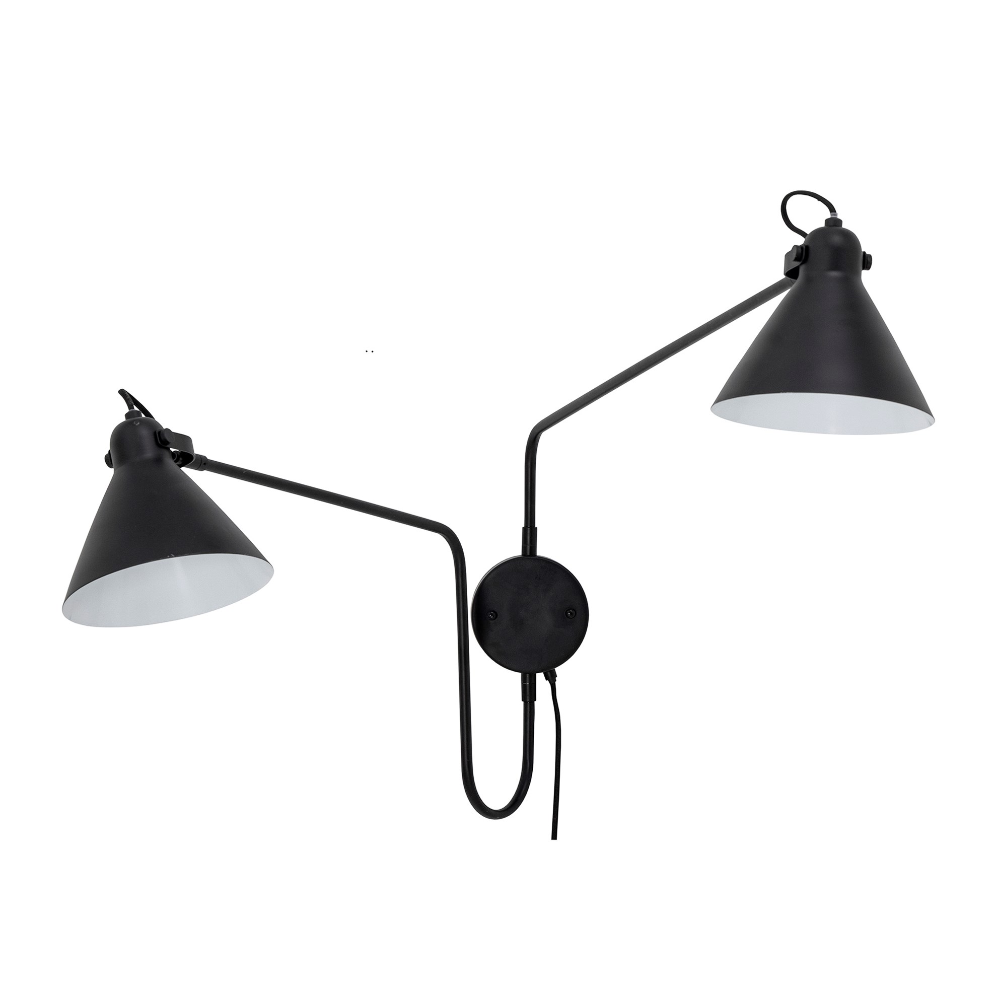 Nástěnná lampa Felicity od Bloomingville je klasická severská lampa vyrobená z černého železa s moderním nádechem. Má dvě krásná stínidla, která lze snadno posouvat a zajistit tak správnou polohu světla. Umístěte jej blízko nočního stolku, do obývacího pokoje nebo do vašeho oblíbeného útulného koutku.