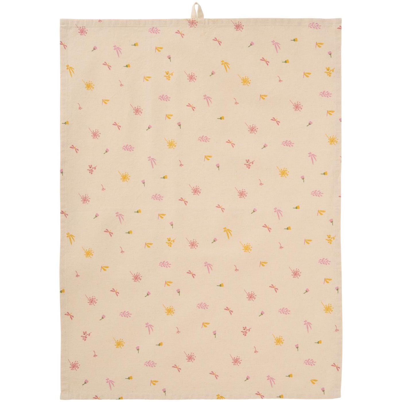 Kuchyňská utěrka Ofelia Ib Laursen přírodní se světle růžovými a žlutými květy a motýly