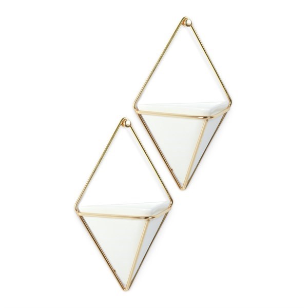 Květináč na stěnu Umbra TRIGG malý SET/2ks bílá, mosazná