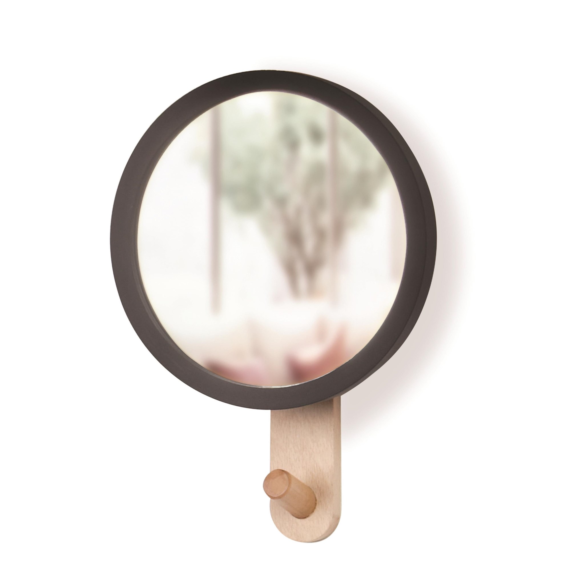 Menší zrcadlo s háčkem HUB 2v1 je moderní a univerzální zrcadlo, ideální pro vaši ložnici, koupelnu nebo zádveří. Součástí zrcadla HUB 2v1 je háček k zavěšení různých oděvů a doplňků. Tento háček vyrobený z vysoce kvalitního masivního dřeva je potažen černým pogumovaným ráfkem odolným proti skluzu, takže vaše předměty zůstanou chráněny a snadno přístupné.